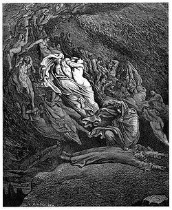 Gustave Doré(1832-1883),ilustrou no século XIX "A Divina Comédia" de Dante,com tais requintes de beleza e perfeição,que muito poucos depois dele se atreveram a ilustrar o poema.Suas imagens impactam além da perfeição do traço.Todo o horror do inferno de Dante está refletido nelas,com seu clima soturno,de desespero e desilusão,com um Dante sempre agarrado a Virgílio,sempre com uma expressão de pavor quase inexprimível no olhar.Mais que ninguém,Doré soube literalmente colocar no papel toda a força da obra de Dante,todo o padecimento insuportável dos pecadores dantescos,em um mundo além da imaginação.Suas imagens do paraíso estão cheia de formas diáfanas e coros de anjos,já há anos luz dos pavores infernais.Um dos maiores desenhistas de todos os tempos,sem dúvida.